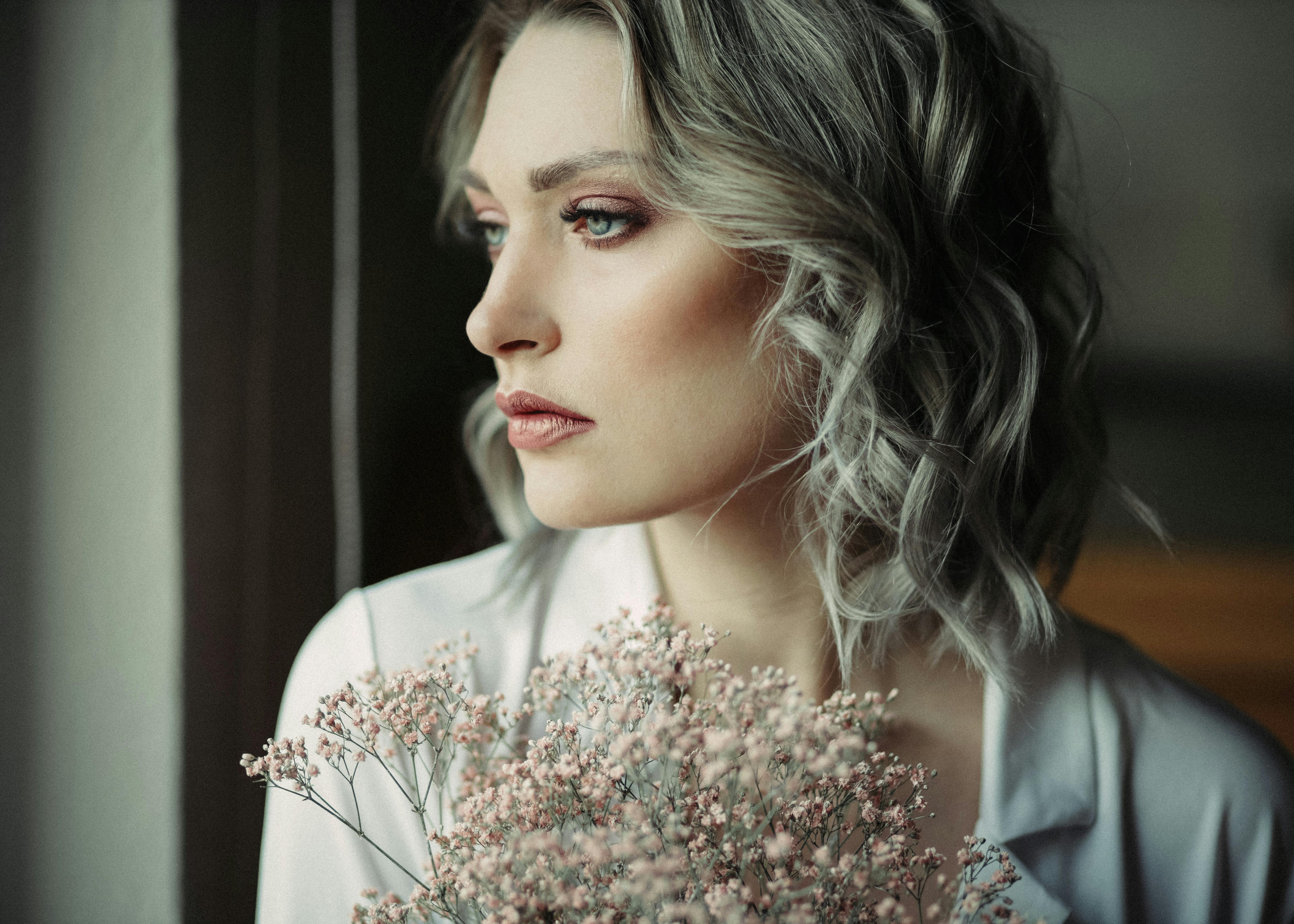 Często niedoceniany, a w 2026 roku niezwykle ważny – przedziałek. Idealnie prosty, wyznaczony na środku głowy lub głęboko z boku, staje się mocnym elementem stylizacyjnym. Środkowy przedziałek świetnie komponuje się z fryzurami w stylu boho i minimalistycznymi upięciami, podczas gdy boczny dodaje fryzurze objętości i charakteru w stylu glamour. Kolejna inspiracja to kwiatowy akcent. W odróżnieniu od poprzednich sezonów, gdzie królowały duże wianki, teraz stawiamy na pojedyncze, ale wyraziste kwiaty. Duża piwonia wpięta w niski kok czy gałązka gipsówki zdobiąca warkocz to detal, który dodaje fryzurze romantycznego i świeżego charakteru.